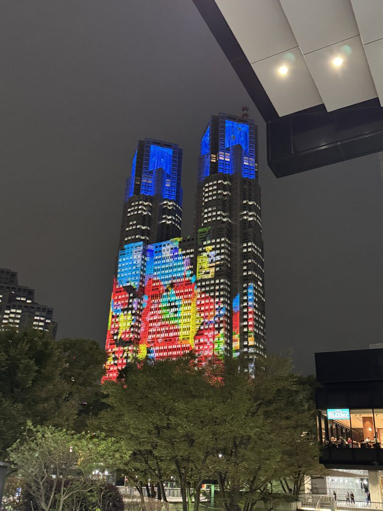 帰る頃には夜になっており、噂の東京都庁のプロジェクションマッピングを拝みました。