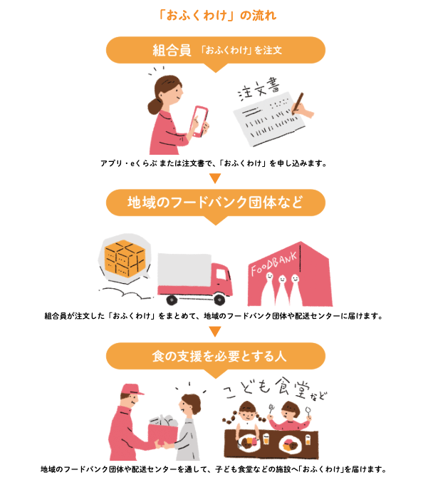 食の支援が必要な人に、組合員が注文した食材を届ける仕組みです。