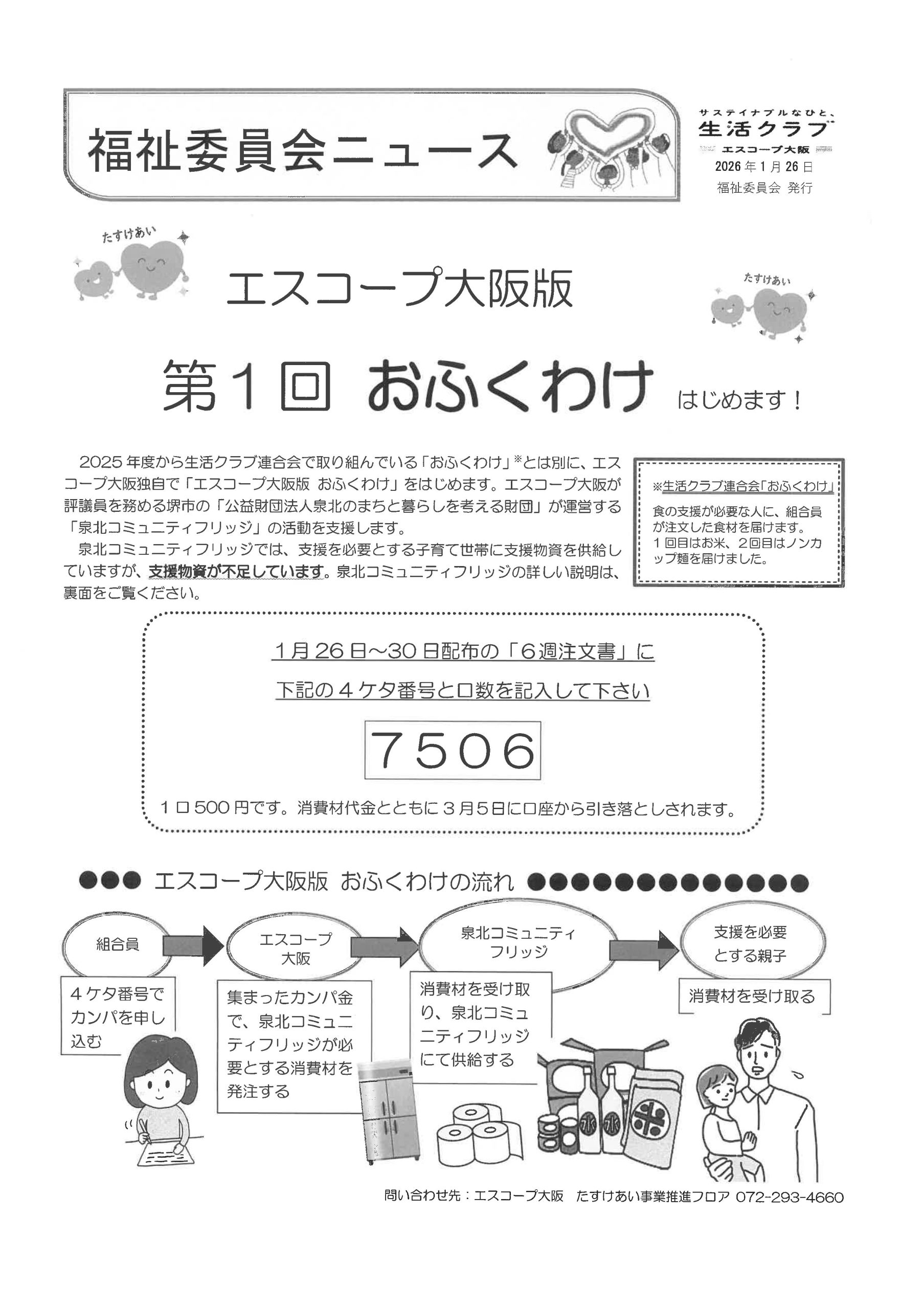 さて、この度、泉北の財団の地元にある、エスコープ大阪様よりおふくわけを実施いただけることになりました!