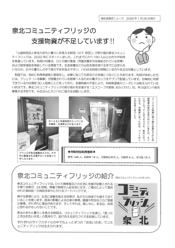 Topicsラボ2026年1月29日エスコープ大阪様がコミュニティフリッジへ「おふくわけ」を実施いただけることになりました!