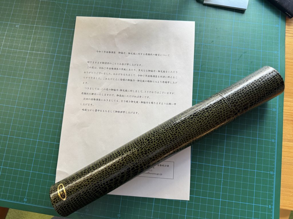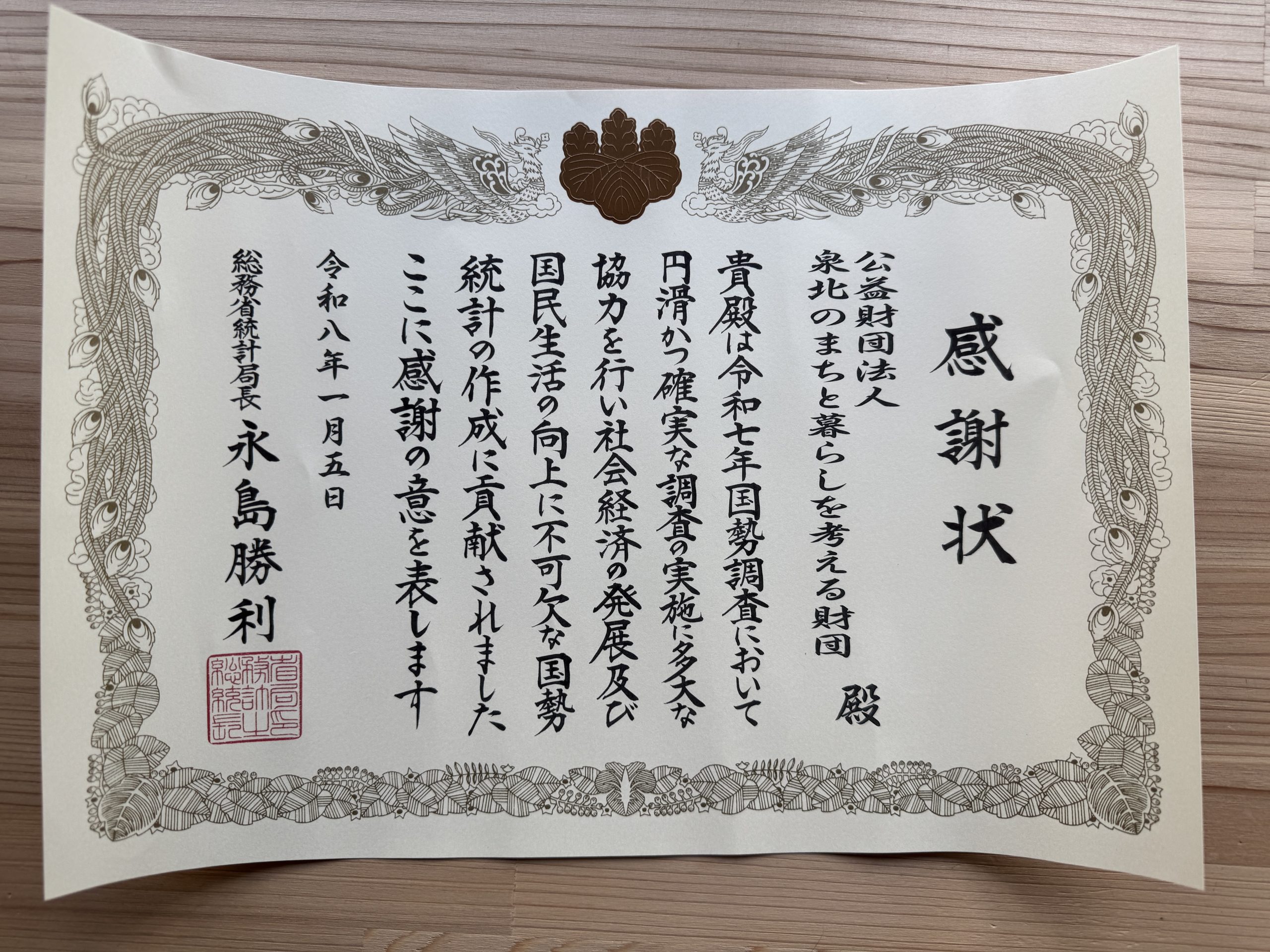令和7年度国勢調査応援団体の感謝状を受け取りました